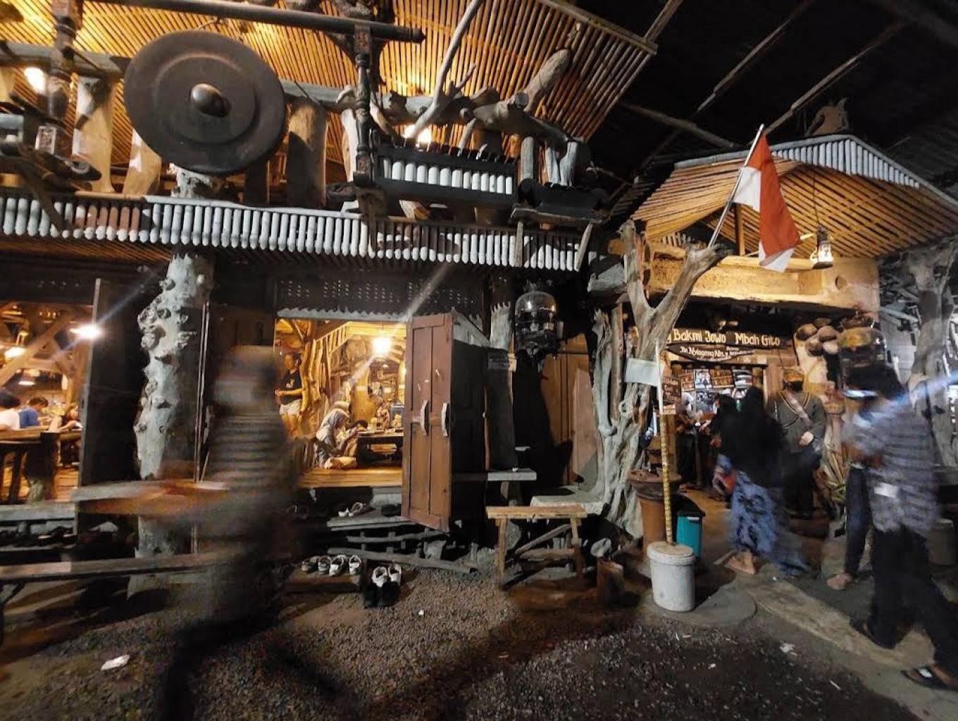 Warung makan Bakmi jowo mbah gito ini memiliki ciri khas tersendiri seperti interior yang digunakan masih kayu-kayu dengan bentuk unik. Perkakas tradisional seperti lonceng sapi, lampu teplok, lampu gantung antik khas jawa, lampu andong dan kendi masih terpasang rapi di dalam warung dan uniknya lagi semua peramusaji yang ada disini masih menggunakan baju lurik tradisional lengkap dengan blangkon bagi laki-laki.
