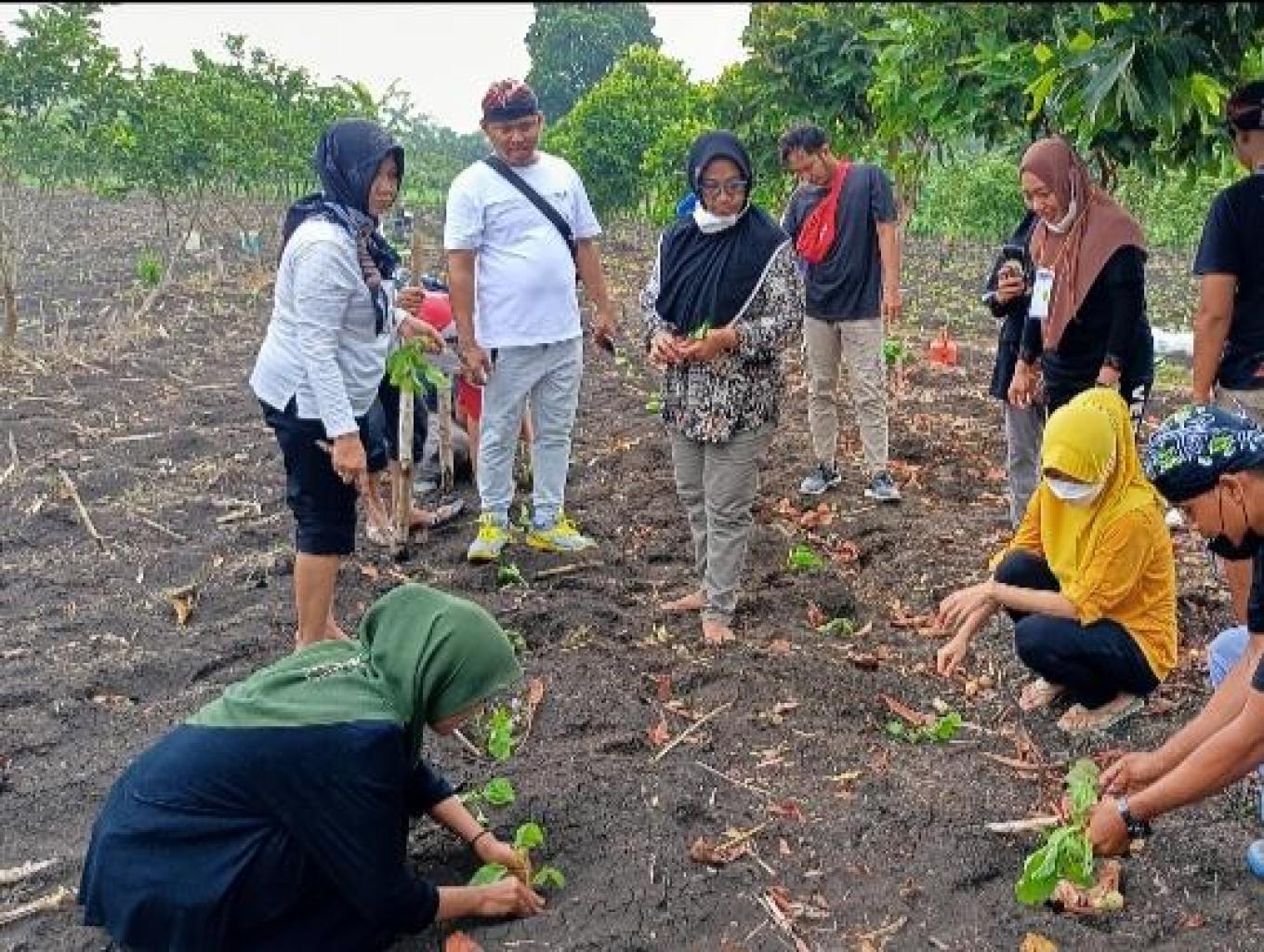 berkebun ini merupakan salah satu produk wisata yang ada di desa wisata ini. Disini wisatawan akan diajak untuk berkeliling ke area persawahan dan perkebunan di desa wisata ini. Selain itu wisatawan juga bisa merasakan sensasi untuk turun langsung untuk ikut bercocok tanam atau memanen hasil kebun atau sawah sesuai dengan musimnya. Disisi lain pemandangan area persawahan dan perkebunan ini akan memberikan keindahan dan kesegaran mata untuk melihat pemandangan alam sekitar.