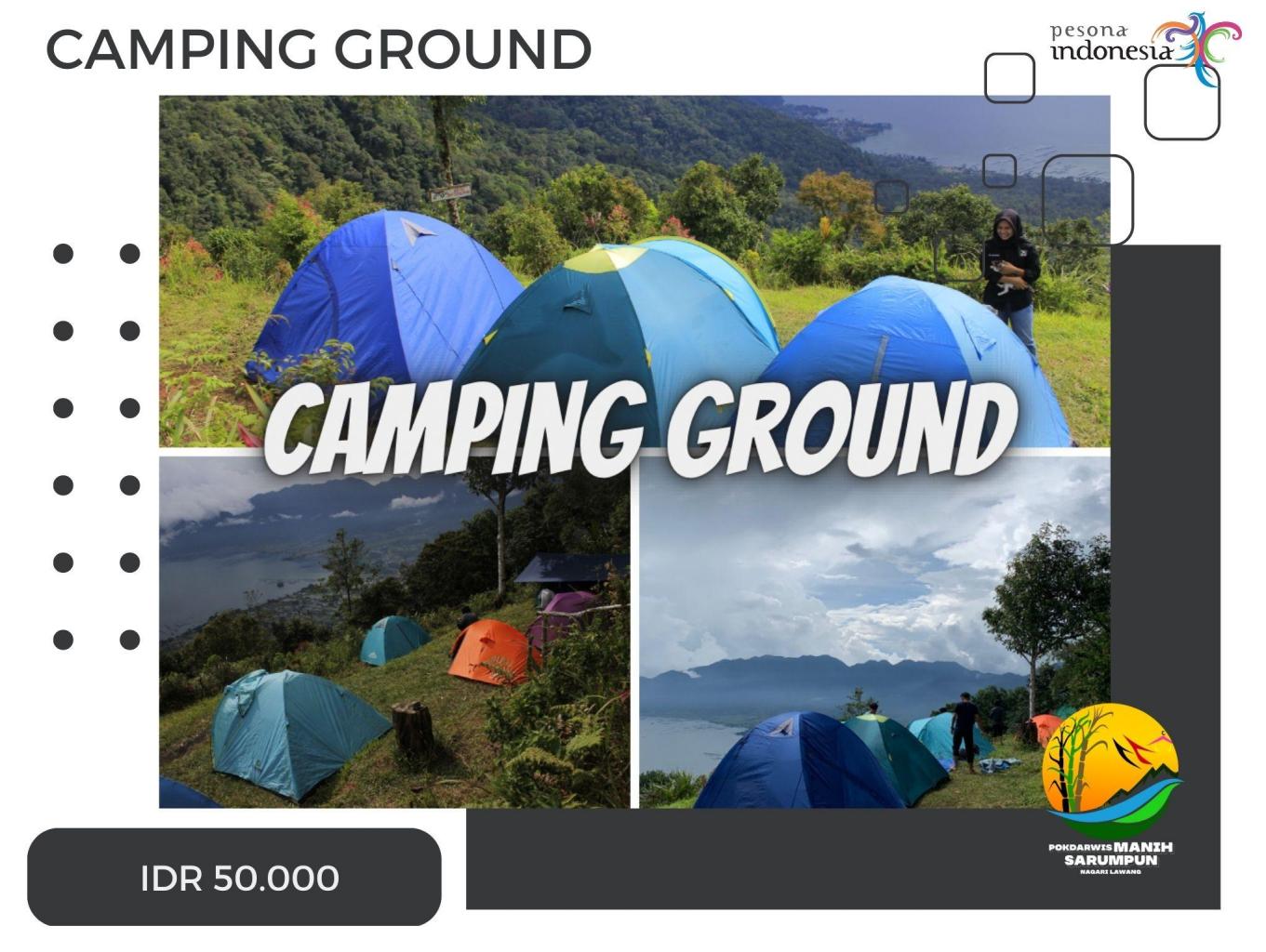 - Sewa Tempat Camping : IDR 50.000