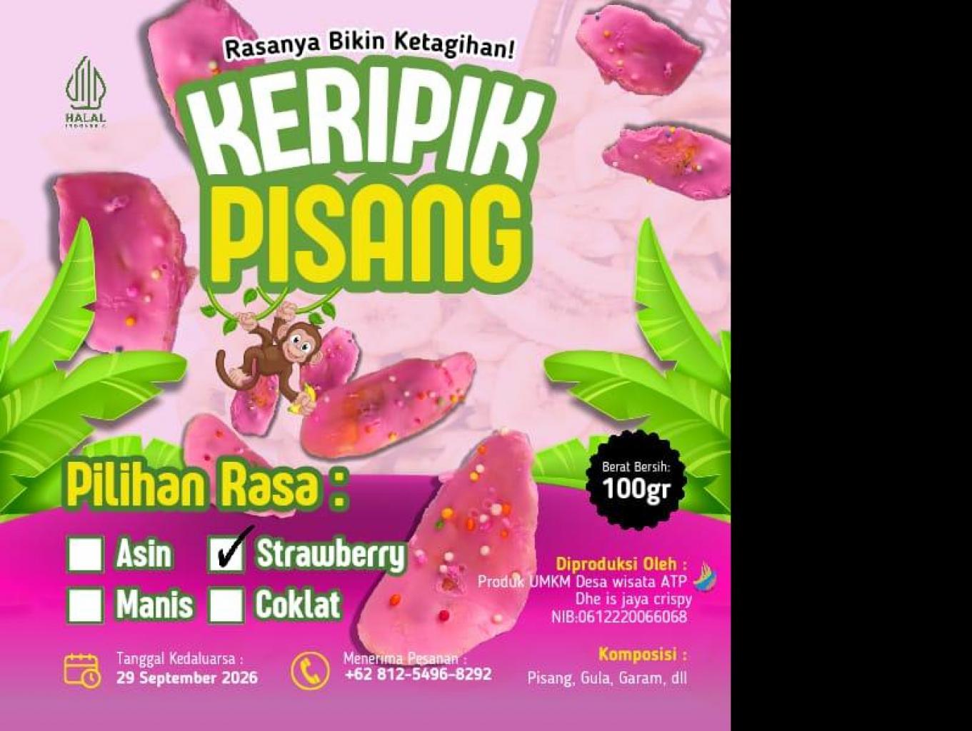 keripik pisang rasa strobery