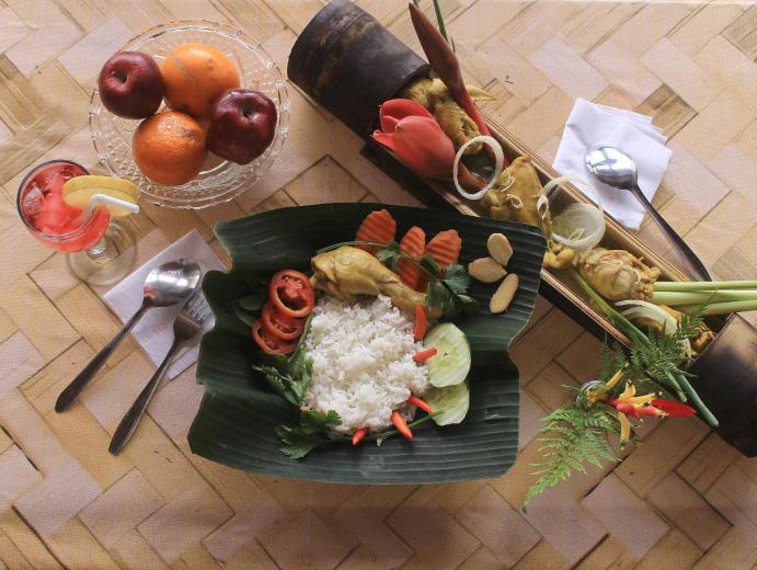 Menu hijau hijau ini di ambil dari konsep alam, karena bebahan dasar semuanya dari ketersediaan di alam, seperti tengkuyung sungai, tempoyak dari buah durian, keladi, dan nadi bungkus daun layakng di masak dalam bambu dan ubi tumbuk yang di masak dalam bambu juga di atas bara api